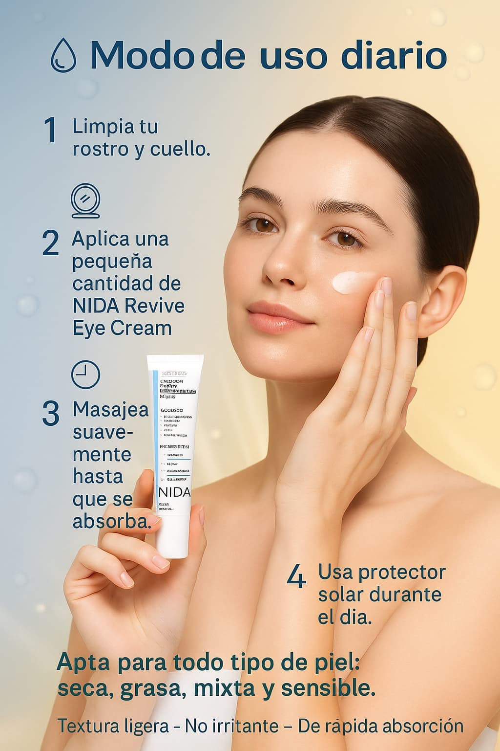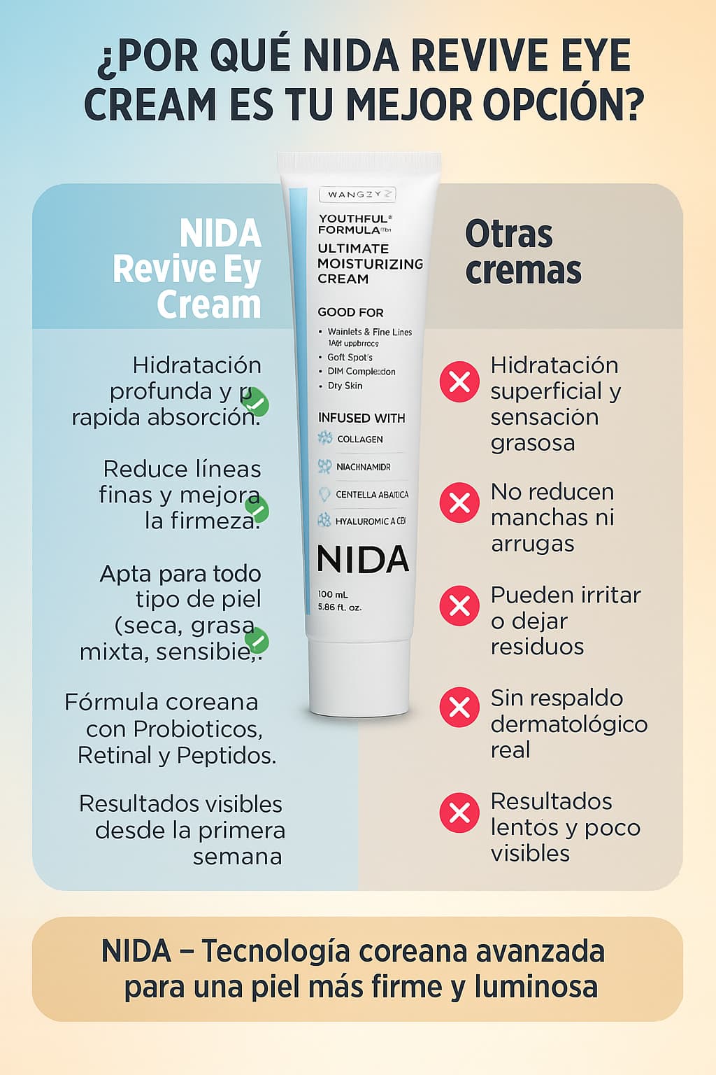 NIDA Revive Eye Cream combina ciencia coreana y ingredientes activos premium para transformar tu piel desde la primera aplicación.